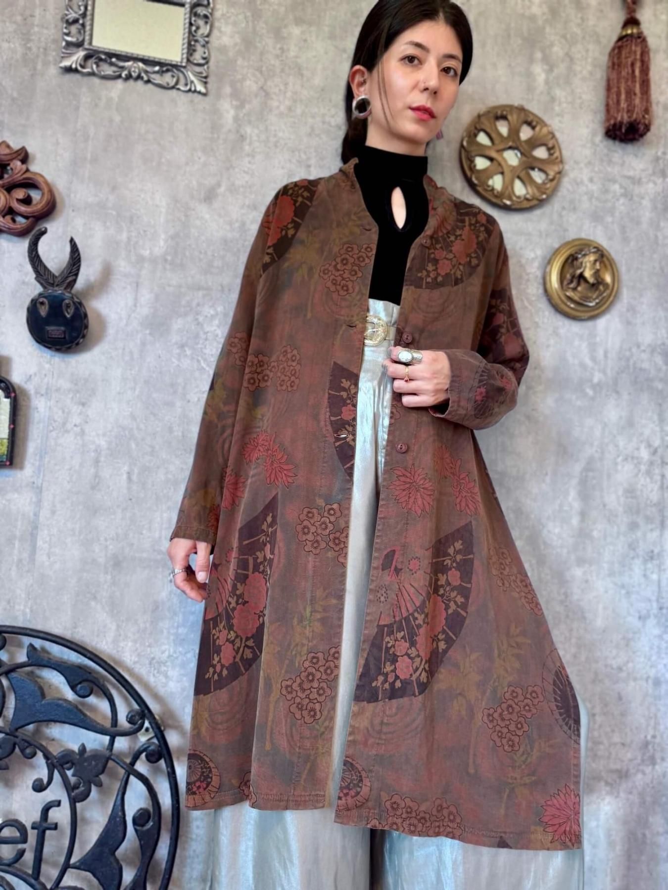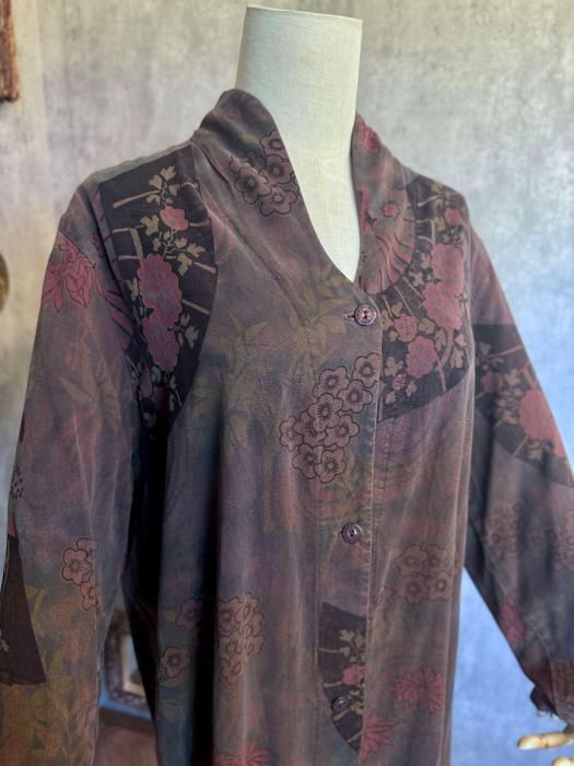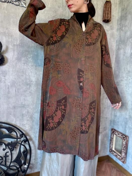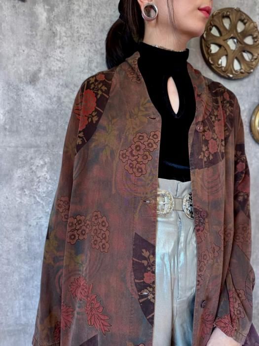 1990sの扇子柄ロングブラウス。