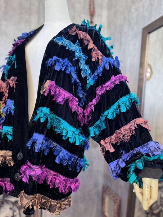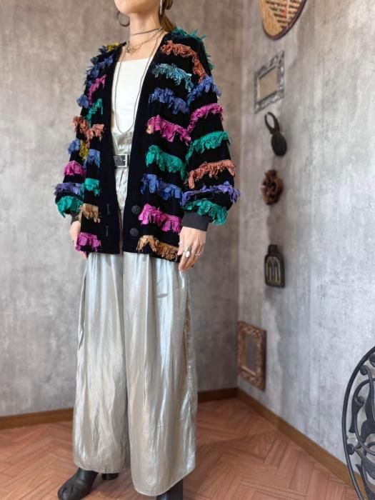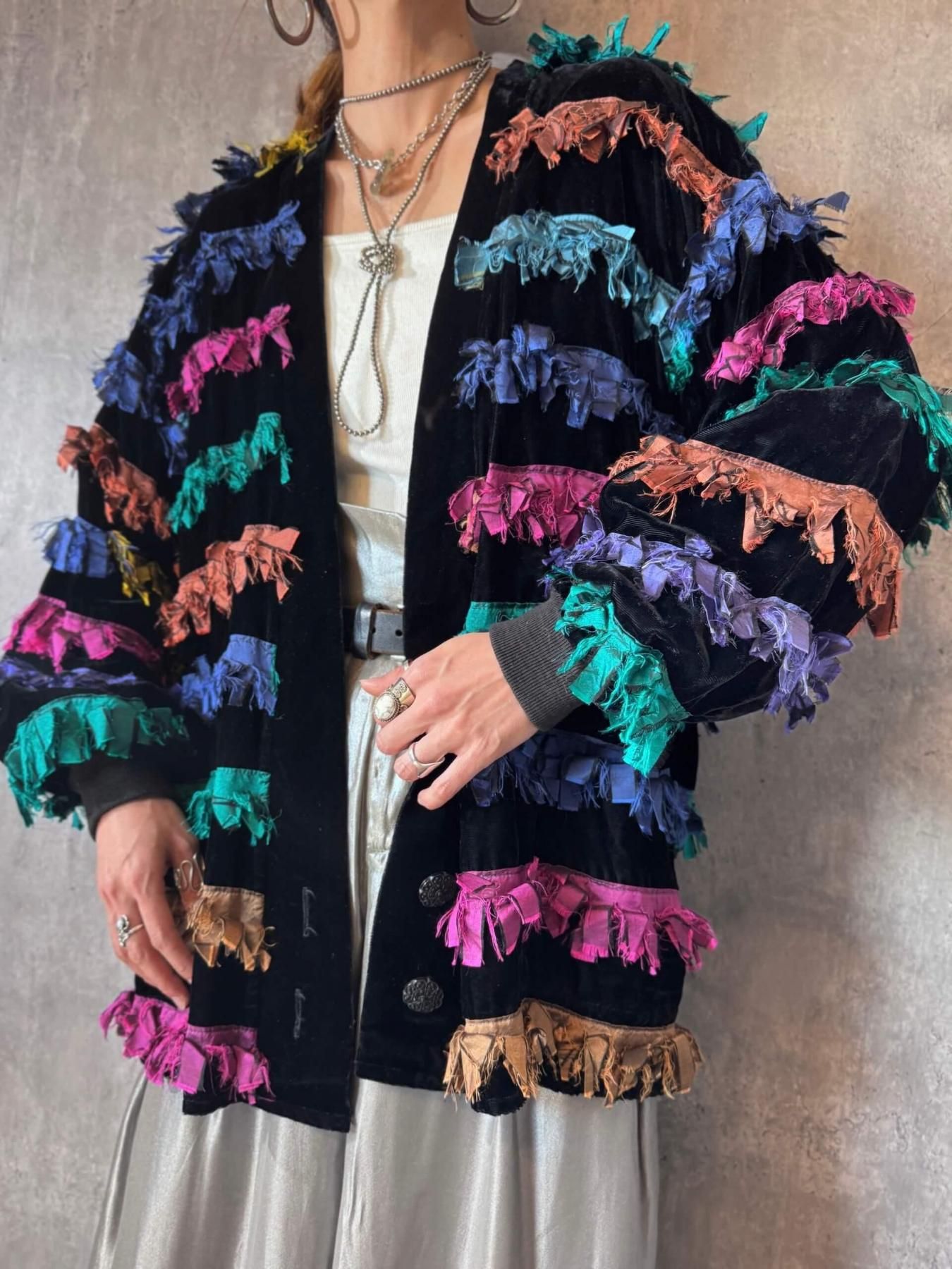 1980sのベロア×カラフルフリンジのオーバーサイズジャケット。