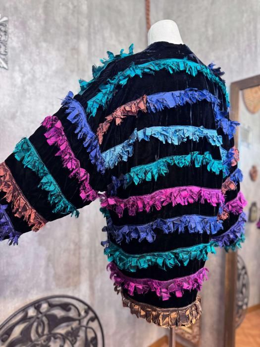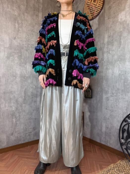 【1980s USA VELVET×COLORFUL FRINGE JACKET】