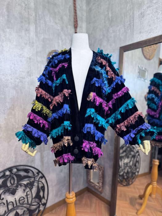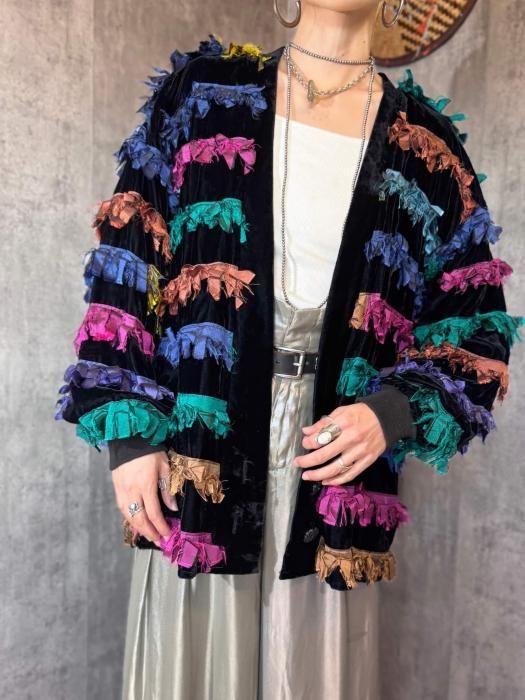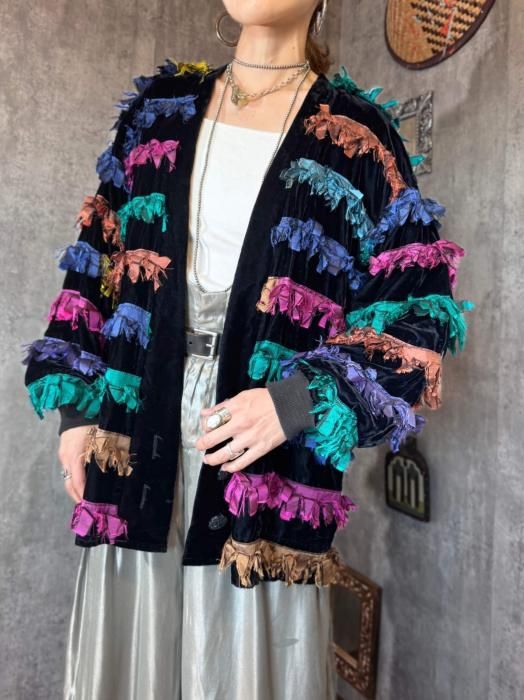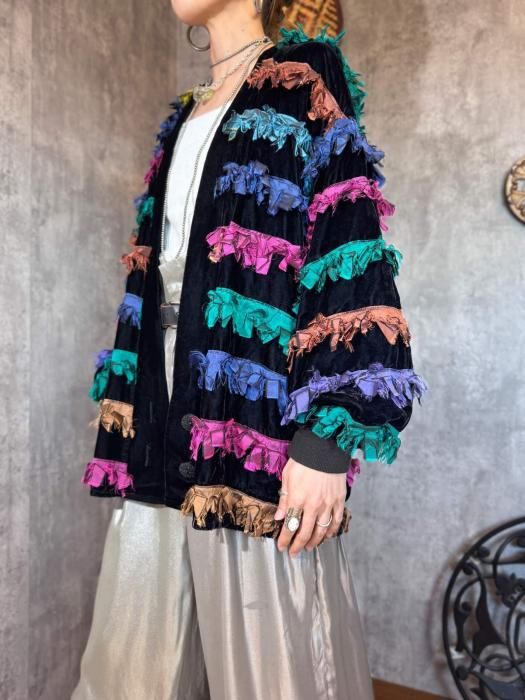 【11/6(木)22:00販売開始】1980s USA VELVET×COLORFUL FRINGE JACKET