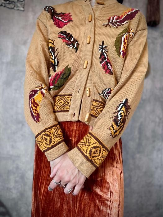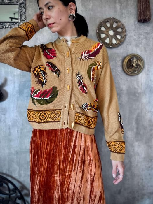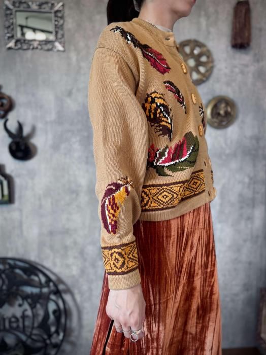 【No.7】1970s FEATHER MOTIF KNIT CARDIGAN
