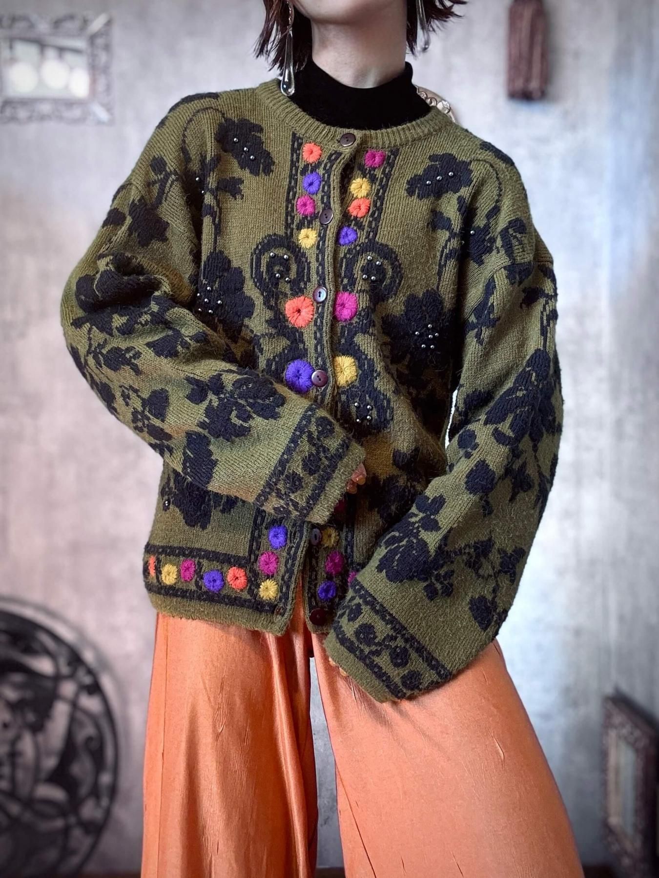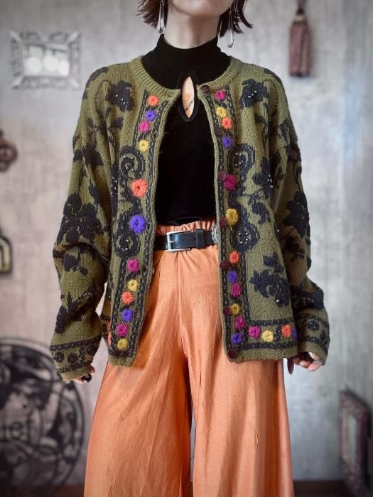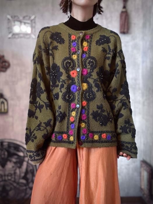 【No.8】1990s FLORAL KNIT CARDIGAN