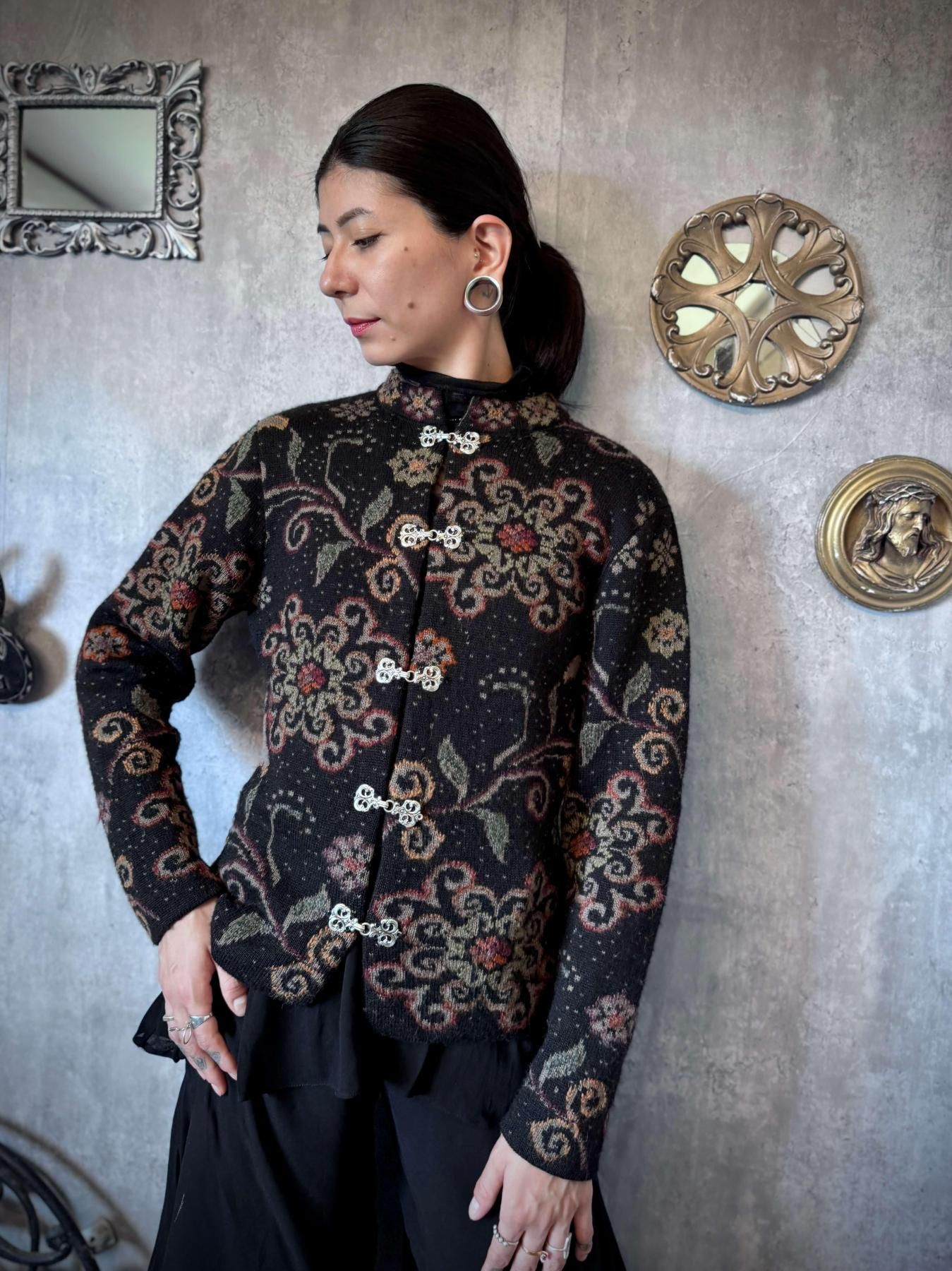 【11/21(金)22:00販売開始】【No.8】1990s FLORAL KNIT CARDIGAN