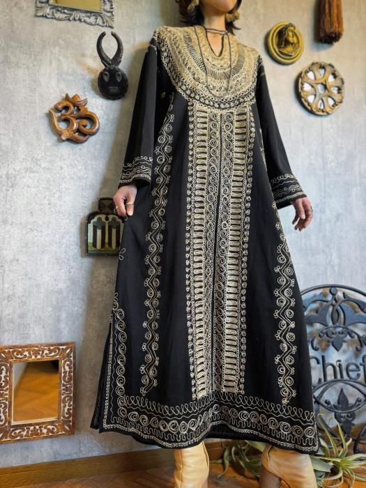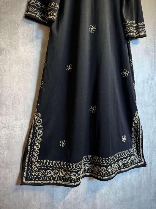 【12/4(木)22:00販売開始】1970s EMBROIDERED BLACK DRESS